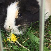 Dieses ziemlich große Meerschweinchenböckchen wurde am 27. April morgens in Rendel im Feld am Ende der Straße „Im Schelmenroth“ von einer Spaziergängerin gefunden. Die Finderin hat das Meerschweinchen erst einmal aufgenommen und versucht, durch Flyer die Halter zu finden.