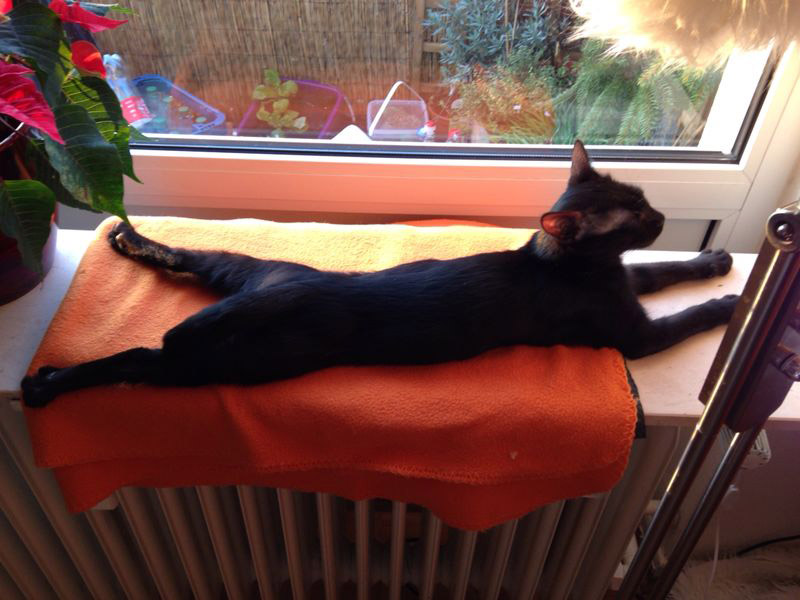 Und die Franzi und ihr Freund der Robin, die wollen mich vielleicht adoptieren, wenn das mit dem Dobby ( das ist der Kater, der bei ihnen wohnt) klappt. Das wäre toll, dann hätte ich immer jemanden zum spielen, dem Dobby ist nämlich auch manchmal langweilig. Und Platz ist da noch eine Menge auf der Decke und auf den Kratzbäumen, sagt die Franzi.
